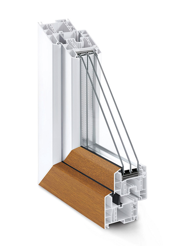 Die PVC-Folie ist zweischichtig aufgebaut: Die Basisfolie bleibt unifarben oder wird bedruckt, die transparente obere Schicht aus PMMA schützt Farben und Dekore vor dem Ausbleichen durch UVStrahlung oder vor anderen Witterungseinflüssen.