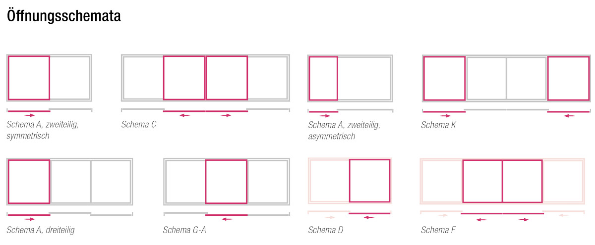 Öffnungsarten der Hebeschiebetür REHAU SYNEGO